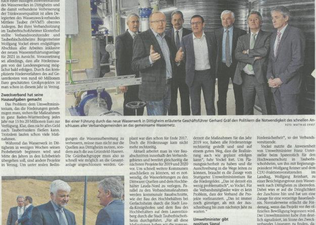 Blick in das neu errichtete Wasserwerk in Dittigheim. Seit 12. Dezember befindet sich die Anlage im erweiterten Probebetrieb. Aufbereitetes Wasser wird in die Netze von Distelhausen, Dittigheim und Teile der Kernstadt eingespeist.